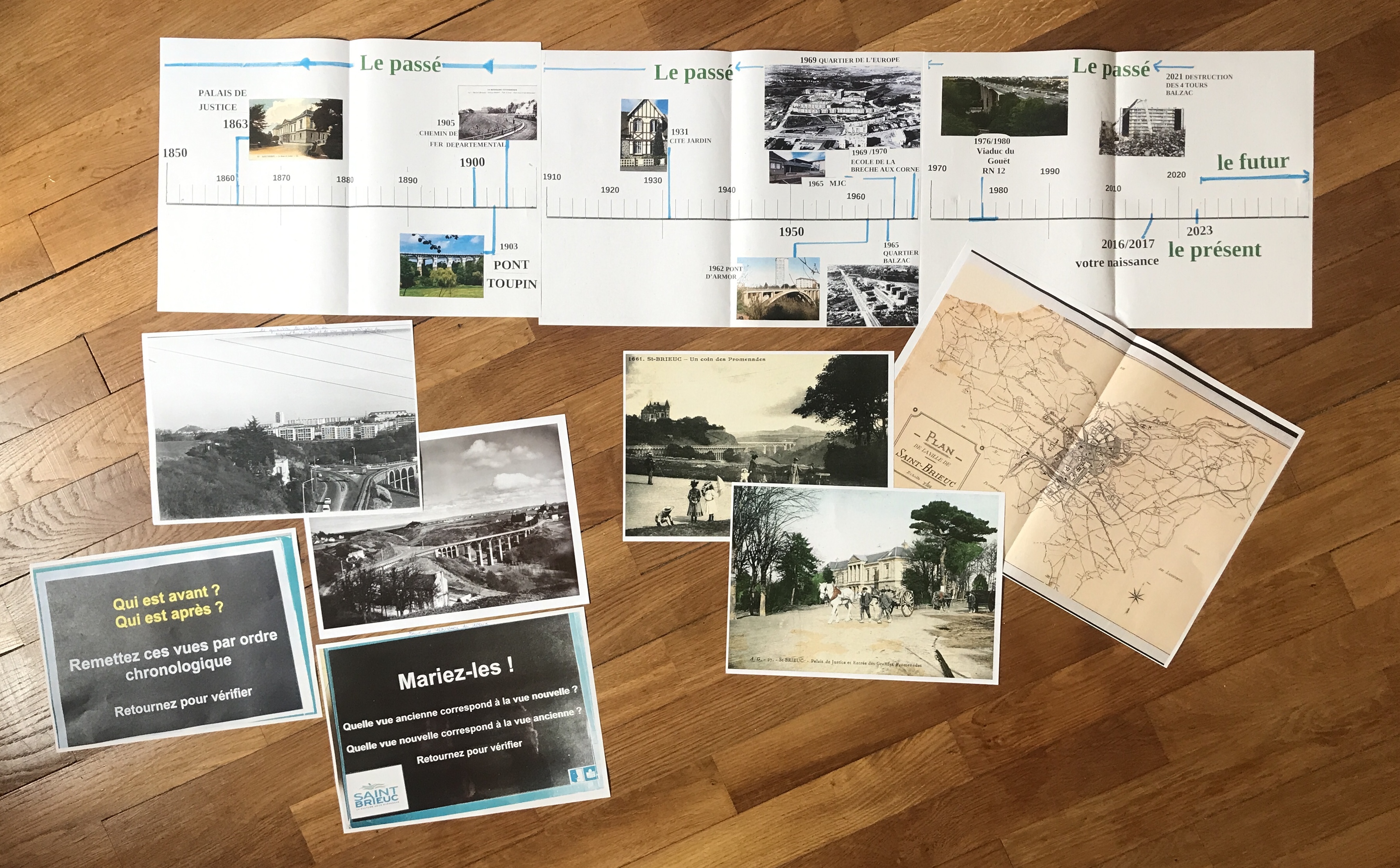 From 3 to 7 December 2023, the pupils discovered games about the history of the places they live in every day: the Gouëdic valley and the Parc des Promenades. Using archive photos and old postcards, the pupils were able to create a participatory timeline.