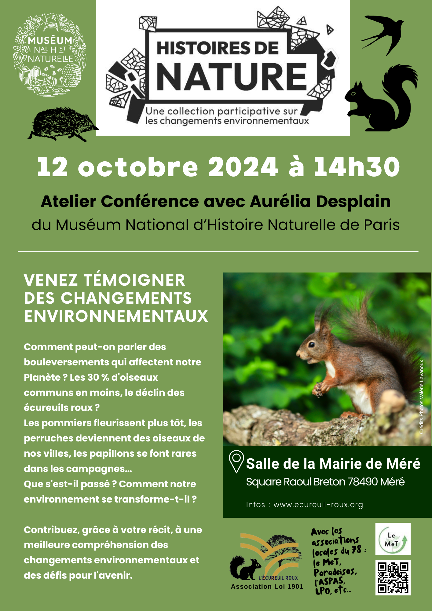 L'Écureuil roux association is bringing together a number of associations on Saturday 12 October from 2.30pm to 4pm in the Méré town hall to run a Changing Natures workshop.